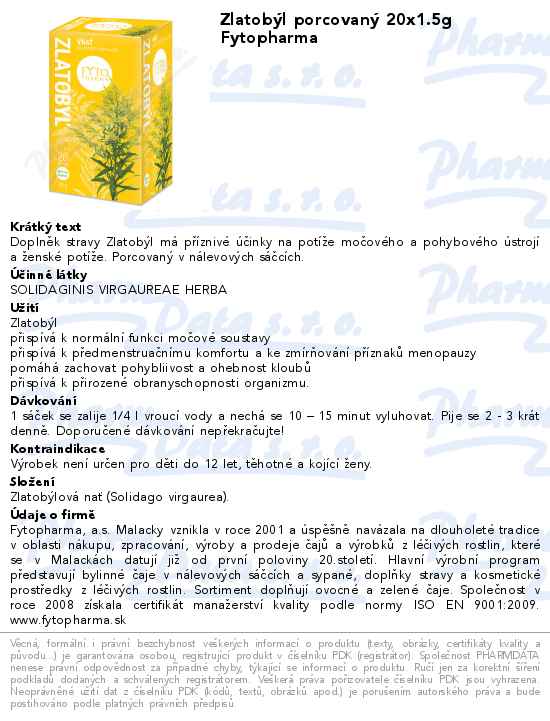Zlatobýl porcovaný 20x1.5g Fytopharma